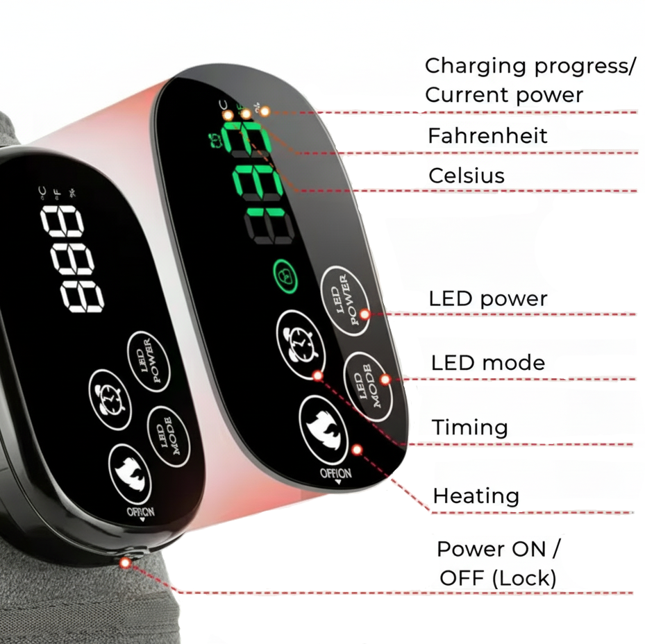 Dual-wavelength red and infrared LEDs penetrate deep into joints to reduce inflammation and accelerate repair.